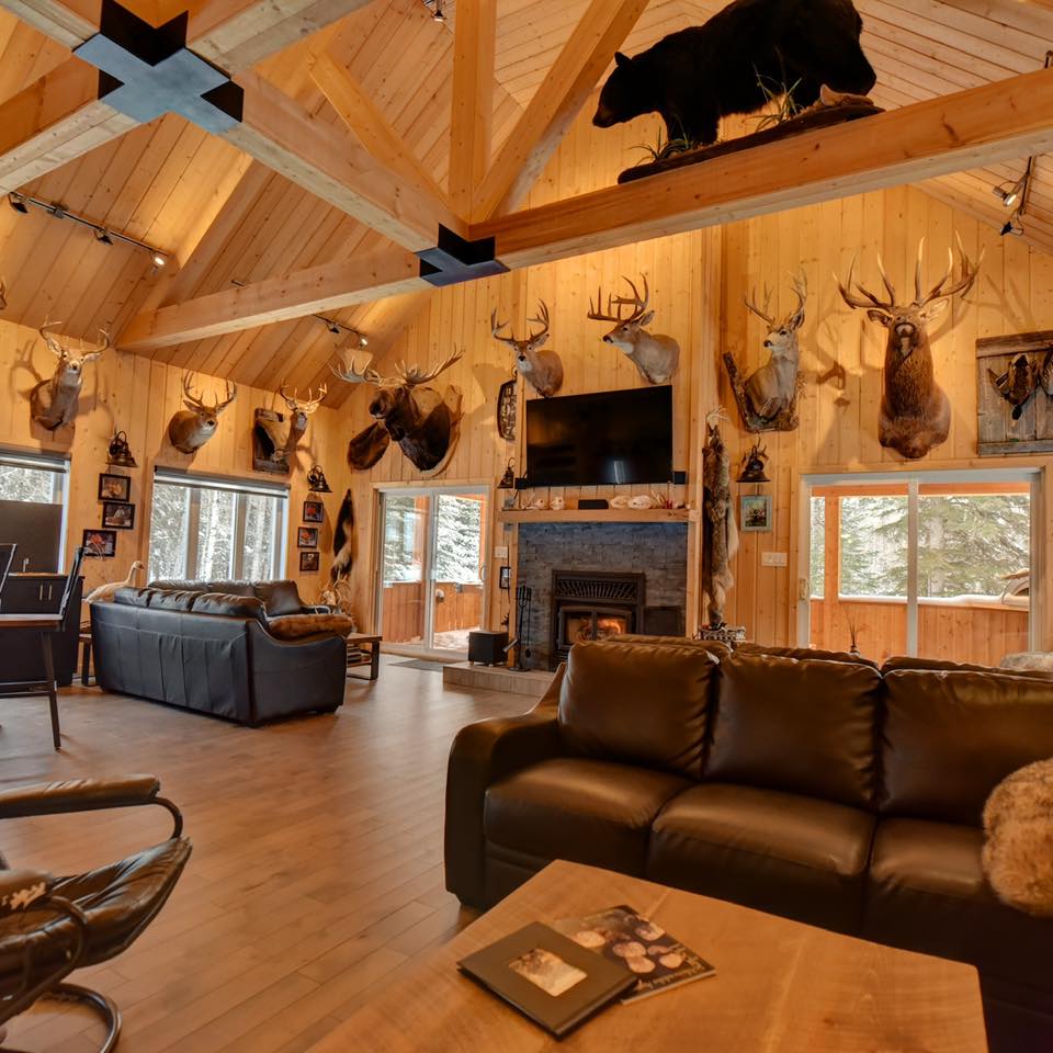 Après une journée de chasse ou d'aventure, détendez-vous dans le lodge principal de Western Trophy Outfitters, un hébergement chaleureux et authentique situé en pleine nature.